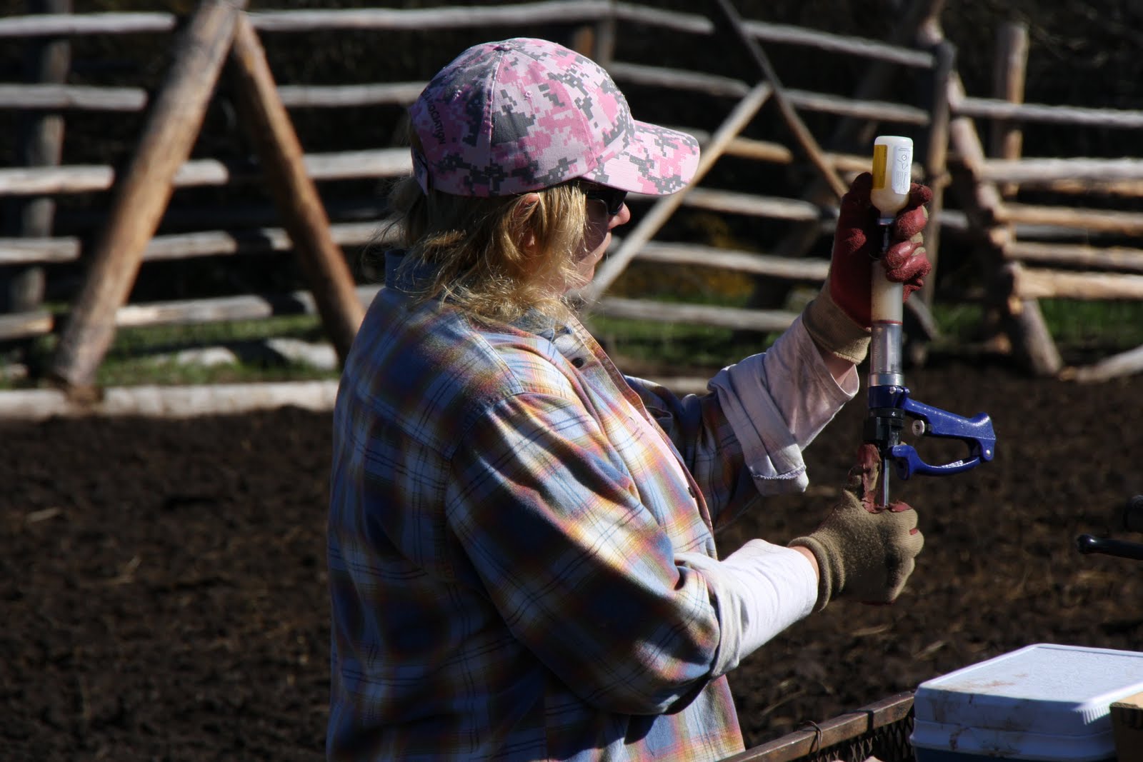 One of the Watson brothers (the Georgia Boys!) is hard at work pushing calves - in his own, very unique way! Whatever works.